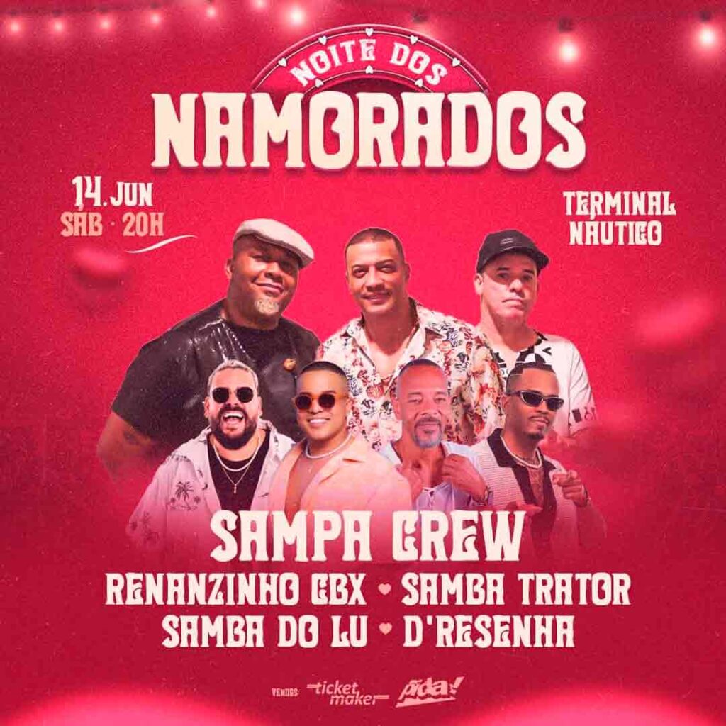 Prepare-se para viver emoções ao som de grandes nomes do samba e do pagode! O destaque da noite é o lendário Sampa Crew, celebrando 38 anos de carreira e trazendo sucessos que atravessam gerações, como “Meu Amor Virtual”, “Distância”, “Nasci Para Te Amar” e “Quero Ficar com Você”. Uma oportunidade imperdível para cantar junto e se emocionar com a trilha sonora dos apaixonados3.